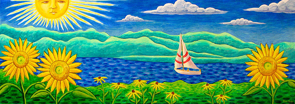 In 1995 I began providing mural-painting services for the Bueno y Sano family of healthy burrito restaurants. I painted all of the interior walls of the flagship Amherst, Massachusetts store.